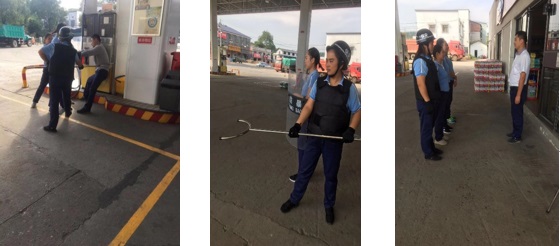 通過本次反恐應急演練,增強了加油站員工對突發(fā)暴恐事件的防范意識,提升了大家使用防暴工具的熟練程度,鍛煉了員工之間的配合能力及實戰(zhàn)水平,為加油站今后處置應急防恐積累了寶貴的經(jīng)驗。